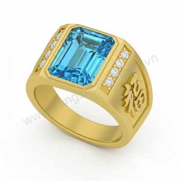 Nhẫn Nam Chữ Phúc Topaz Xanh Vàng 18K May Mắn TBM172