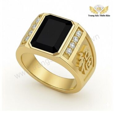 Nhẫn Nam Đá Sapphire Đen Nam Tính Vàng Tây 18K TBM170