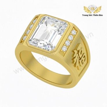 Nhẫn Nam Chữ Phúc Topaz Trắng Vàng 18K Thiết Kế Sang Trọng TBM17