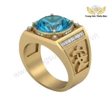 Nhẫn Chữ Phúc Đẹp Sang Trọng Cho Nam Mặt Đá Topaz Xanh TBM171