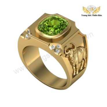 Nhẫn Nam Tuổi Sửu 1973 Mệnh Mộc Đá Peridot Vàng 18K TBM165