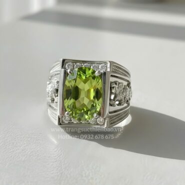 Nhẫn Nam Hình Rồng Chất Liệu Bạc 925 Đính Đá Peridot TBB176