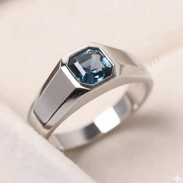 Nhẫn Nam Bạc 925 Nhỏ Gọn Mặt Đá Topaz Xanh London TBB179
