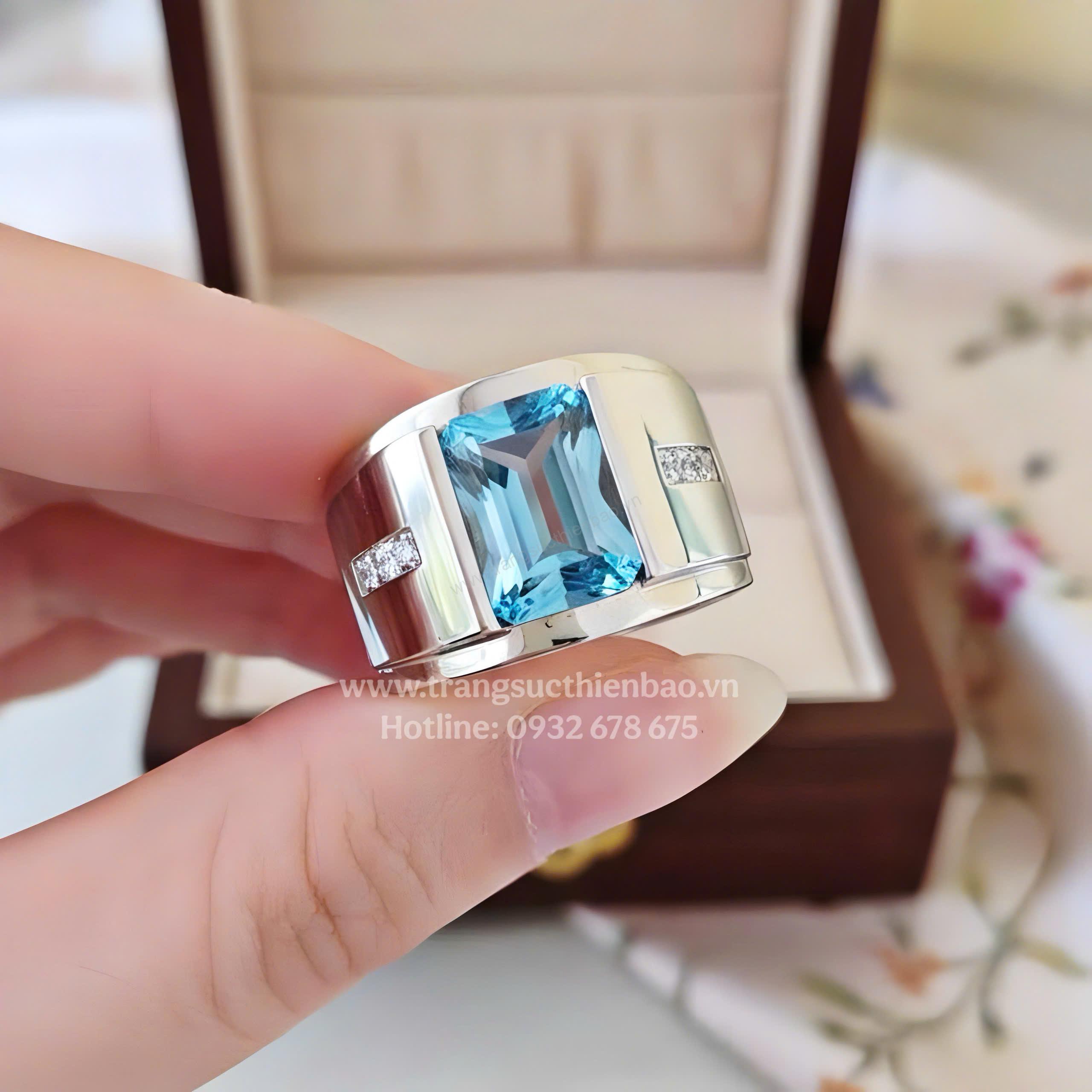 Nhẫn Bạc Nam Kết Hợp Đá Topax Xanh Thiên Nhiên Hợp Phong Thủy TBB174